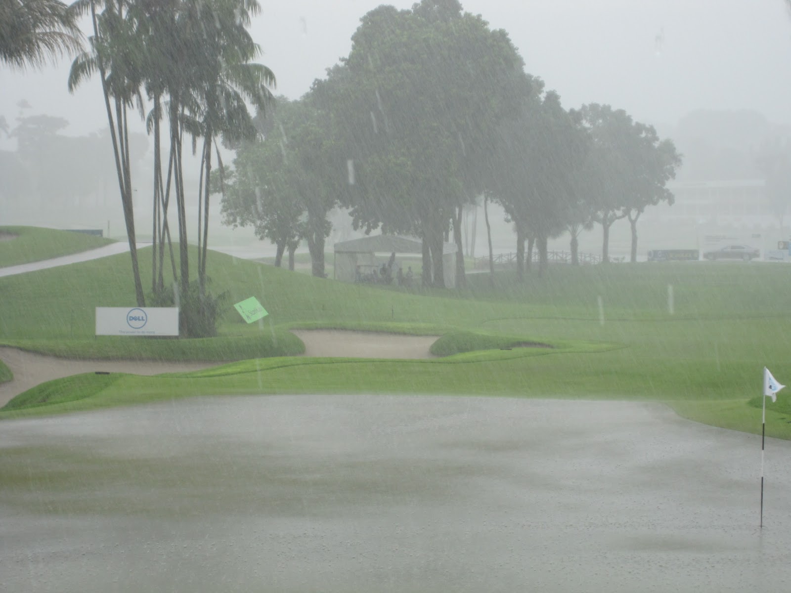 Vet inte om det har regnat och åskat så ihållande tidigare så länge jag har varit här, men någon gång ska väl vara den första. Eller så var det helt enkelt hämnden för att någon hittat på att man skulle spela Europatourtävling i Asien!